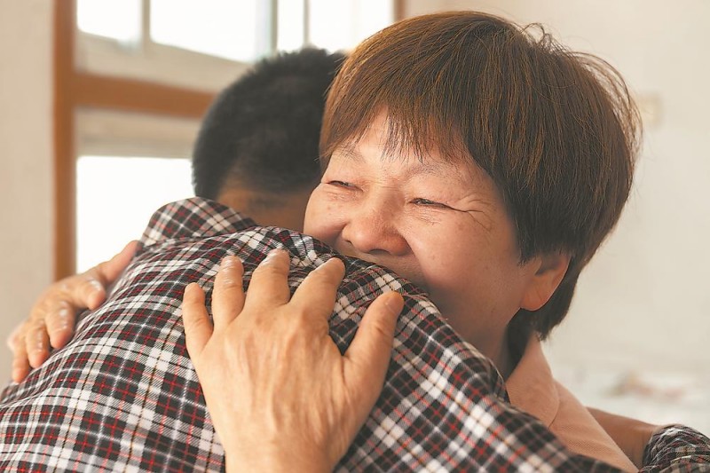 4月3日,徐妈来到俊杰家中走访。告别时,徐妈给了俊杰一个鼓励的拥抱。施辰静 摄