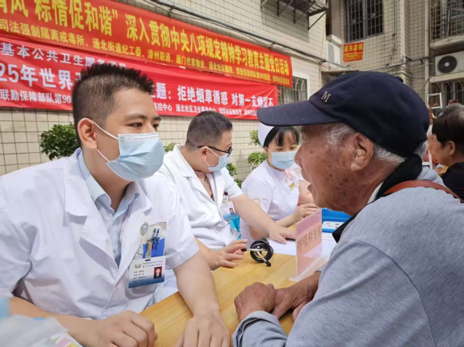 在粽香弥漫的另一侧,医护人员已然搭建好义诊台。端午节素有“避五毒”的习俗,社区借此契机推出“健康端午”义诊活动,为居民免费测量血压、血糖,慢性病患者还能领取定制版《端午饮食指南》,了解如何科学享用粽子。活动现场还搭建了“健康知识长廊”。图文并茂的展板串联起端午习俗与现代医学。